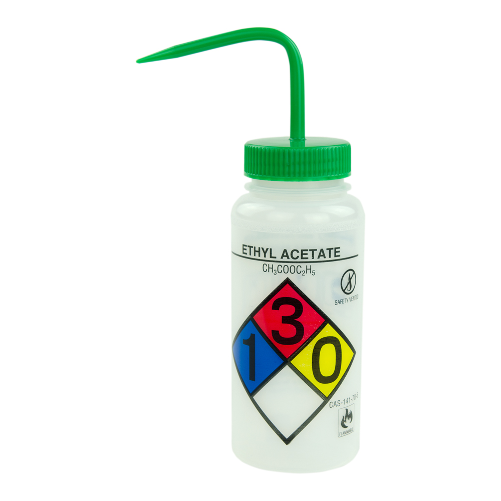 500ml 16 Oz Scienceware Ethyl Acetate Safety Vented Labeled Wide Mouth Wash Bottle With Green Dispensing Nozzle U S Plastic Corp
